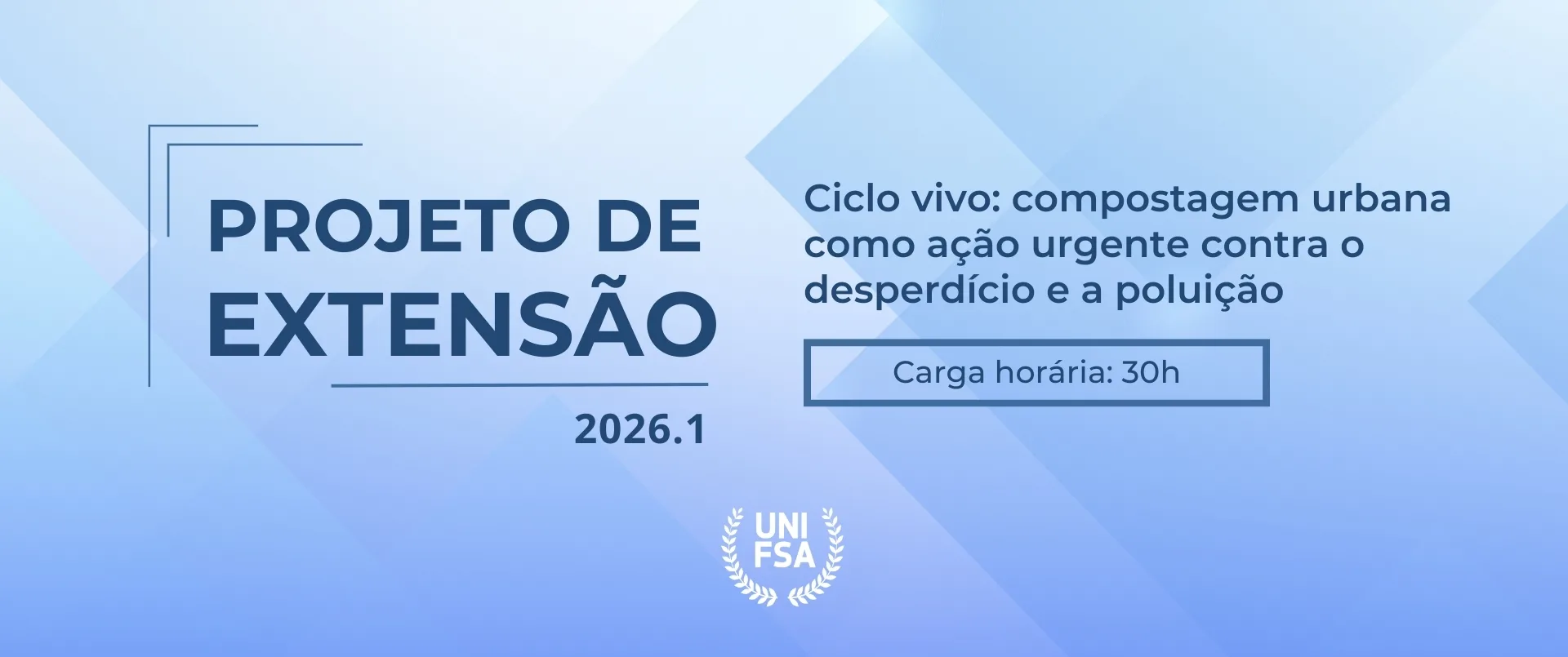 Inscrições abertas | Projeto de Extensão Ciclo vivo: compostagem urbana como ação urgente contra o desperdício e a poluição 2026.1 23 de fevereiro de 2026