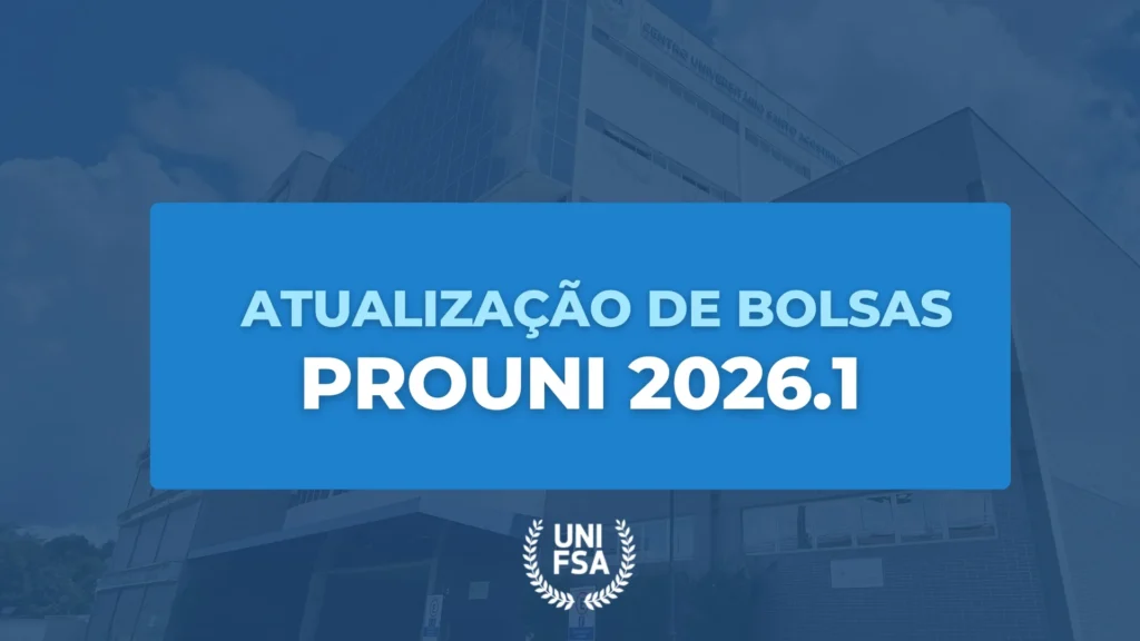 O Centro Universitário Santo Agostinho informa aos alunos beneficiários do Programa Universidade para Todos (PROUNI) que, no período de 28 de abril a 06 de maio de 2026, ocorrerá a atualização das bolsas, sendo obrigatória para todos os bolsistas que ingressaram no programa até o segundo semestre de 2025.