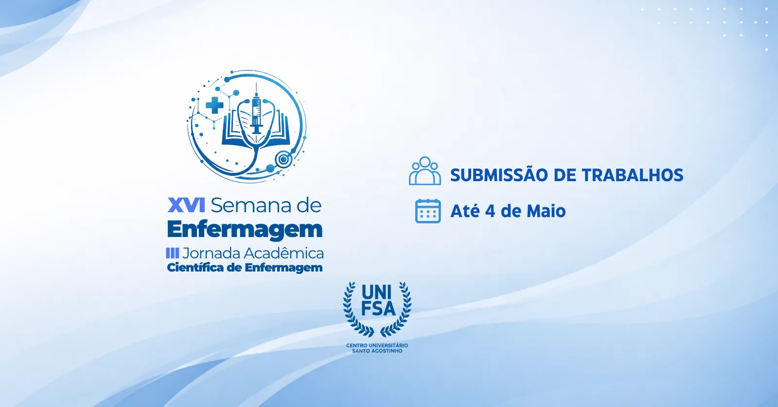 XVI Semana de Enfermagem e III Jornada Acadêmica Científica de Enfermagem abre prazo para submissão de trabalhos científicos 24 de abril de 2026