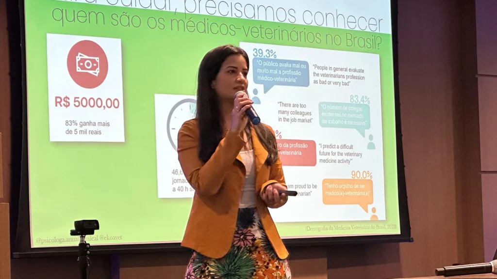 Já no Auditório Clóvis Melo, a discussão foi sobre “Saúde mental na Medicina Veterinária”, com Profa. Dra. Anna Laura Leal Freire (PUC – Goiás) e Méd. Vet. Lígia Celina Rocha Pires Ferreira, vice-presidente do CRMV-PI, sob moderação da Profa. Dra. Julliet Teixeira de Oliveira Santos (UNIFSA).