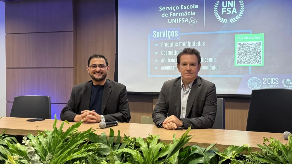 Ao mesmo tempo, no Auditório Clóvis Melo, especialistas discutiram “Cannabis medicinal: avanços científicos e perspectivas no mercado global”, com Prof. Dr. Marcelo Polacow Bisson (Centro Universitário São Camilo/SP – CRF-SP) e Dr. Luiz José de Oliveira Júnior (Conselho Federal de Farmácia), sob moderação da Profa. Dra. Lyghia Maria Araújo Meirelles (UNIFSA).