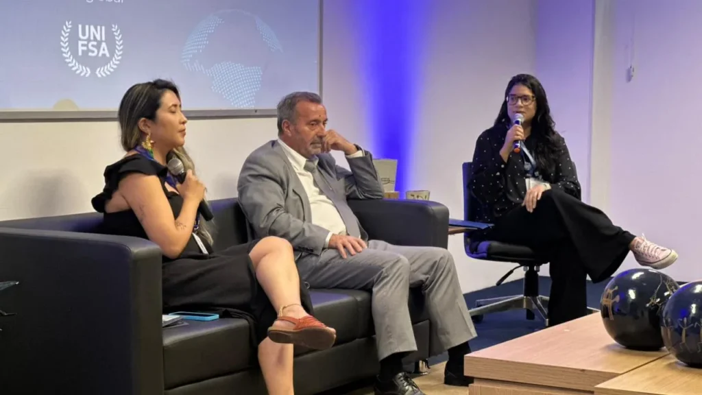 Encerrando a tarde, às 16h, o CICS trouxe discussões que unem política, sustentabilidade e protagonismo social. Na Sala de Conferência, o painel “Governança inteligente e desenvolvimento territorial: inovação, dados e sustentabilidade no setor público” contou com os professores Dr. Joaquim Manuel Croca Caeiro (Universidade de Lisboa) e Dra. Bruna de Freitas Iwata (IFPI/SEPLAN-PI), com mediação da Profa. Ma. Lorena Moura Santana (UNIFSA).