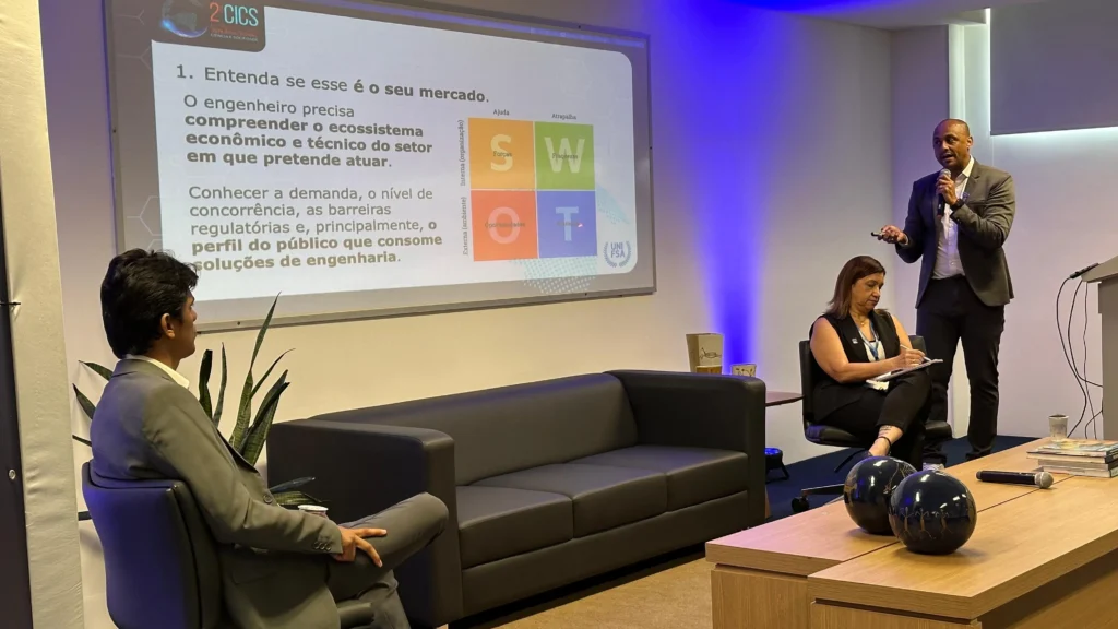 A partir das 10h30, três novas mesas movimentam os debates da manhã. Na Sala de Conferência, o painel “Engenharia que cria: o empreendedorismo como caminho profissional” contará com Eng. Angelo Santos (MAQS Consultoria) e Eng. Hércules Lima de Medeiros (Confea/Crea-PI), mediado pela Profa. Dra. Eldelita Águida Porfírio Franco (UNIFSA).