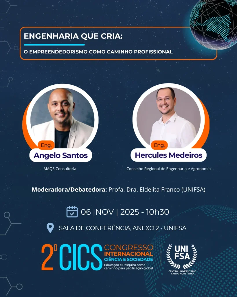 Nesta quinta-feira (6), o 2º Congresso Internacional Ciência e Sociedade (CICS) segue com uma programação repleta de diálogos entre ciência, tecnologia, saúde, humanidades e políticas públicas. O terceiro dia do evento no Centro Universitário Santo Agostinho reforça o compromisso da instituição com a produção de conhecimento que transforma realidades e conecta saberes.