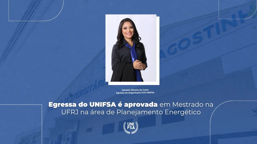 A engenheira civil Daniele Oliveira da Costa, egressa do Centro Universitário Santo Agostinho (UNIFSA), foi aprovada no mestrado do Instituto Alberto Luiz Coimbra de Pós-Graduação e Pesquisa de Engenharia da Universidade Federal do Rio de Janeiro (COPPE/UFRJ), referência nacional e internacional em pesquisa e inovação.