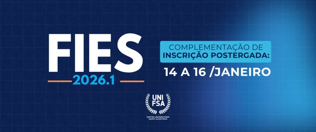 O Centro Universitário Santo Agostinho informa aos estudantes beneficiados pelo Fundo de Financiamento Estudantil (FIES) que o Ministério da Educação (MEC) publicou o Edital nº 1, de 7 de janeiro de 2026, que estabelece o período e os procedimentos para a complementação das inscrições postergadas referentes ao semestre 2026.1.