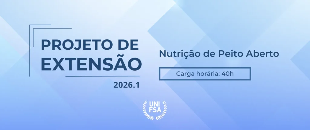 O Centro Universitário Santo Agostinho (UNIFSA), no uso de suas atribuições legais, informa que foram prorrogadas as inscrições para a seleção de estudantes extensionistas do projeto de extensão Nutrição de Peito Aberto. Os interessados poderão se inscrever até o dia 12 de março de 2026. Para efetivar a inscrição, é necessário realizar a doação de 1 pacote de leite em pó, que deverá ser entregue no NUAPE após a inscrição.