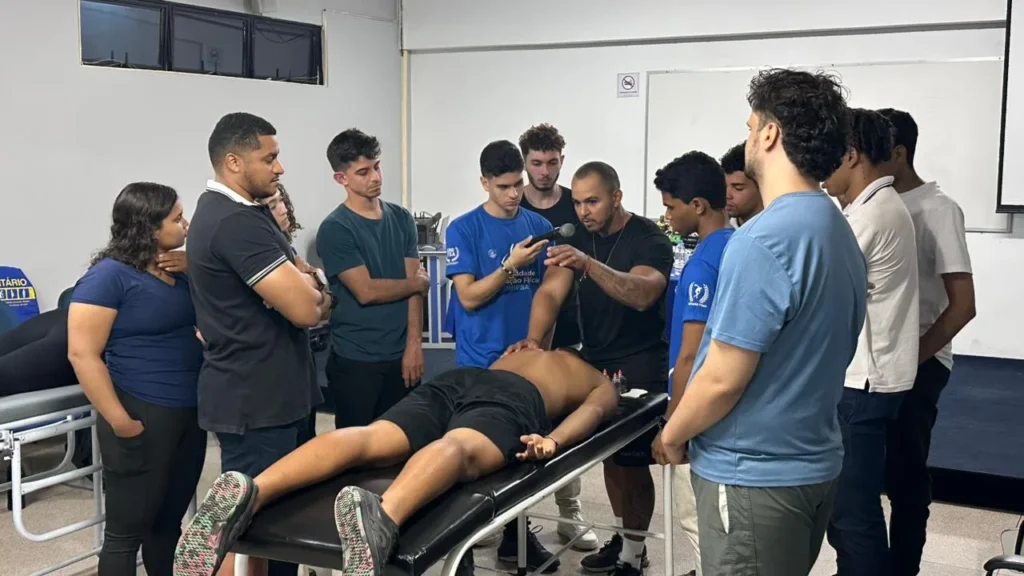 A programação seguiu com mesas-redondas que discutiram temas essenciais para a formação em Educação Física. A primeira debateu a prática esportiva para além do ambiente universitário, com representantes do vôlei, atletismo, judô e badminton. A segunda mesa abordou as experiências profissionais no mercado do fitness, trazendo vivências e orientações sobre atuação e tendências da área.