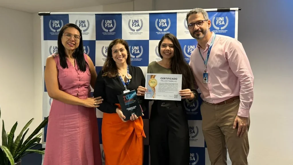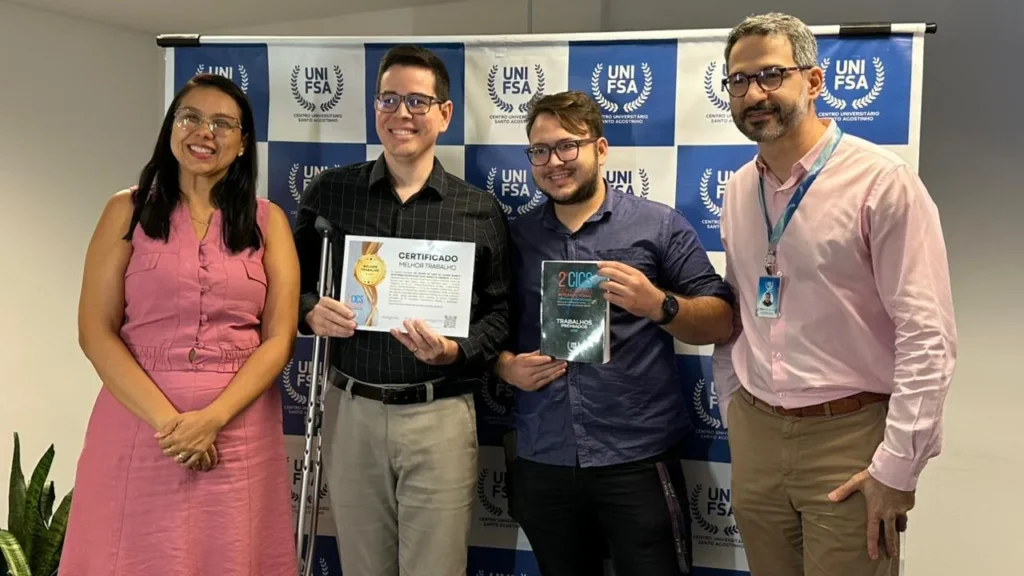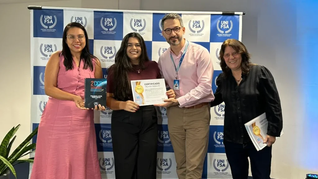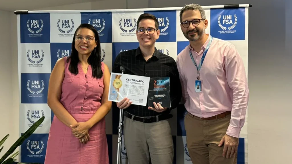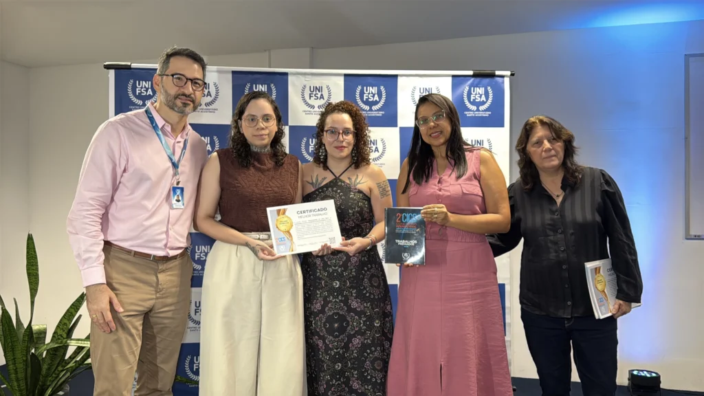 A programação seguiu com a entrega de certificados aos autores dos trabalhos premiados nos diversos Grupos Temáticos, contemplando áreas como inovação, saúde, direito, educação, tecnologia e sustentabilidade. O momento reforçou o papel da pesquisa científica na formação acadêmica e no fortalecimento das instituições de ensino superior.