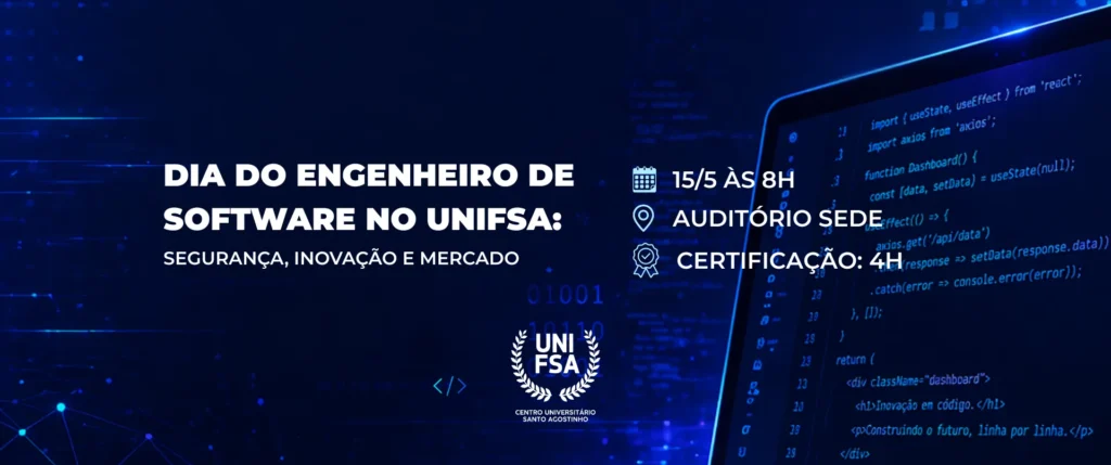 O Centro Universitário Santo Agostinho (UNIFSA), por meio do curso de Engenharia de Software, promove, no dia 15 de maio, no auditório da Sede, o evento “Dia do Engenheiro de Software”. A atividade é voltada para estudantes do curso e áreas afins, com o objetivo de discutir temas atuais da tecnologia e aproximar os alunos das demandas do mercado.