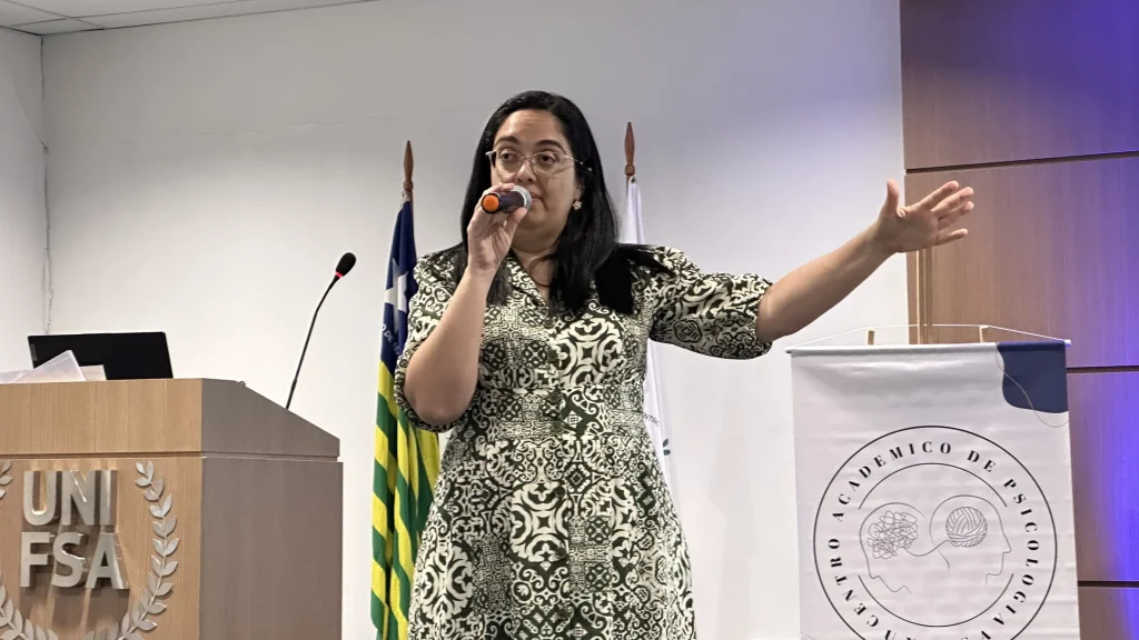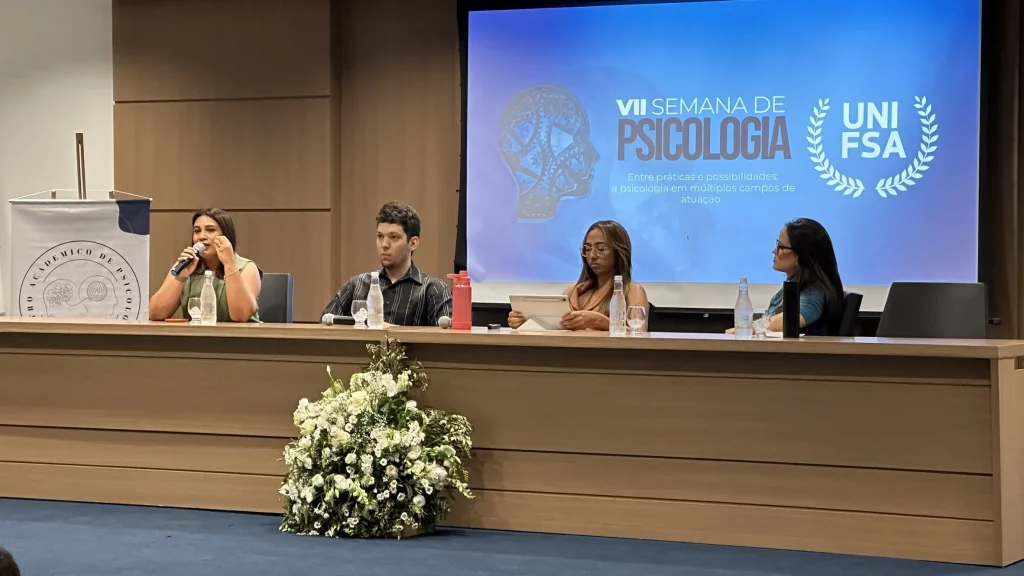 O segundo dia teve início com a apresentação do Centro Acadêmico de Psicologia (CAP UNIFSA), que expôs suas ações, projetos e objetivos para o fortalecimento da representatividade estudantil no curso. O momento reforçou o protagonismo dos alunos na construção de um espaço acadêmico participativo.