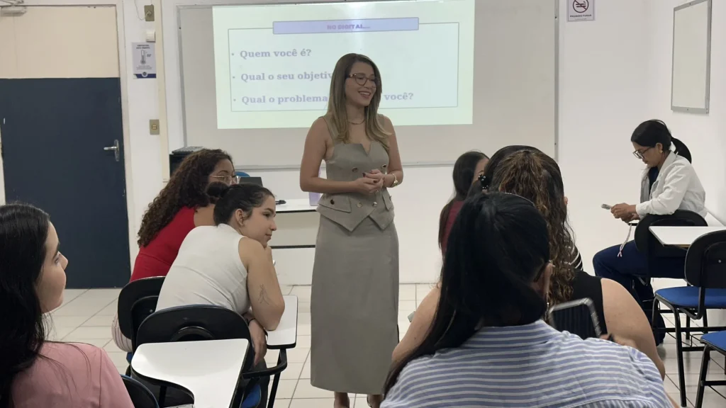 Encerrando o dia, a roda de conversa “Caminhos e possibilidades: carreira, vida acadêmica e empreendedorismo em Psicologia” reuniu egressos do UNIFSA — Esp. Nara Gisele de Araújo, Carlos Eduardo Barbosa Ferreira e Esp. Maria Clara Oliveira — para compartilhar trajetórias profissionais e acadêmicas, inspirando os estudantes sobre as múltiplas possibilidades de atuação após a graduação.