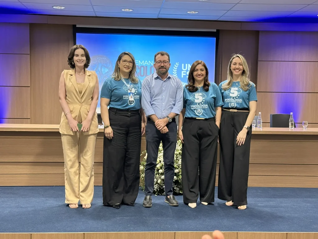 A cerimônia de abertura aconteceu no Auditório Clóvis Melo – Anexo II, com a presença do Diretor de Ensino, Prof. Dr. Edjôfre Coelho de Oliveira, da Coordenadora do curso, Profa. Dra. Maria Zilda Silva Soares, da Coordenadora Adjunta, Ma. Juliana Gomes da Silva Soares, da Assessora Pedagógica do curso de Psicologia, Francisca das Chagas Pereira de Sousa, e da Conselheira Presidente do CRP21, Renata Bandeira Jardim. O momento marcou o início de uma programação voltada à reflexão e valorização das diversas áreas de atuação da Psicologia.
