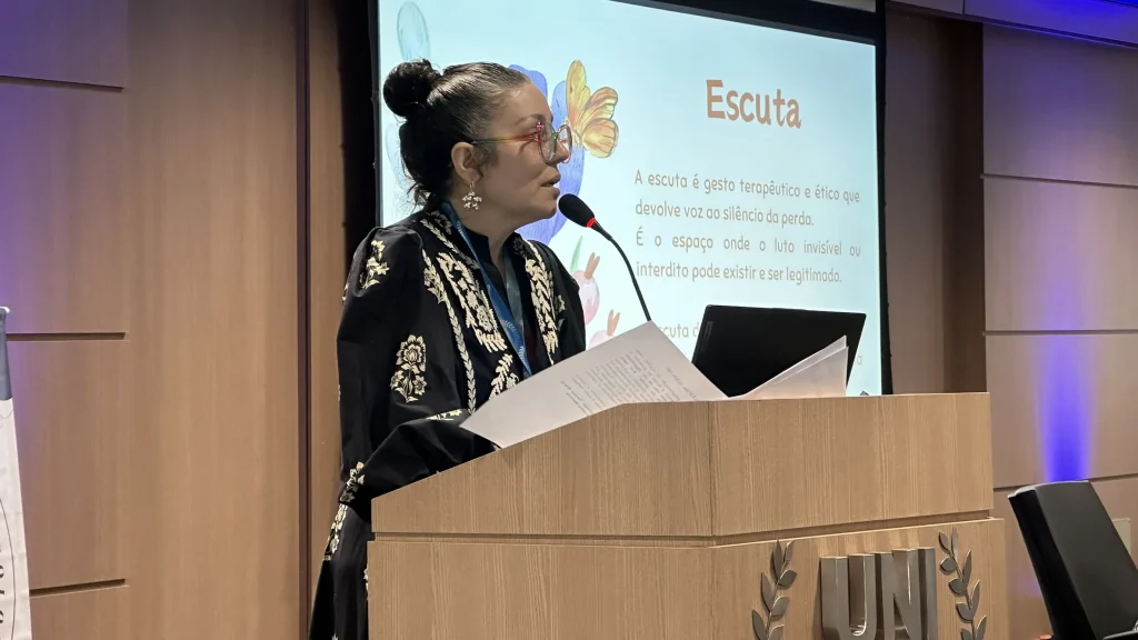 Em seguida, as psicólogas Esp. Teresa Nunes e Ma. Patrícia Carvalho Moreira (UNIFSA) ministraram a palestra “Luto que não se vê: dignidade, vínculo e escuta no silêncio da perda”, abordando a importância de acolher processos de luto invisibilizados na sociedade. A atividade emocionou o público e incentivou reflexões sobre empatia e cuidado emocional.